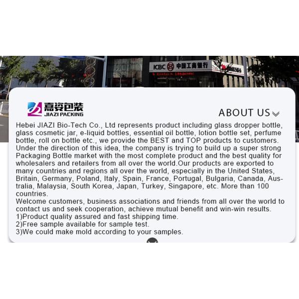 Hebei Jiazi Bio-tech Co., Ltd is mainly engaged in development, production and sales for cosmetics series of packaging or glass jar and bottle, plastic bottle and jar with customers all over the world. We can supply OEM and ODM service. Let our experienced sales staff, along with our extensive in-stock product line and full-service department assist you in creating a unique packaging solution for your product marketing needs. We are looking forward to working with you for long time.